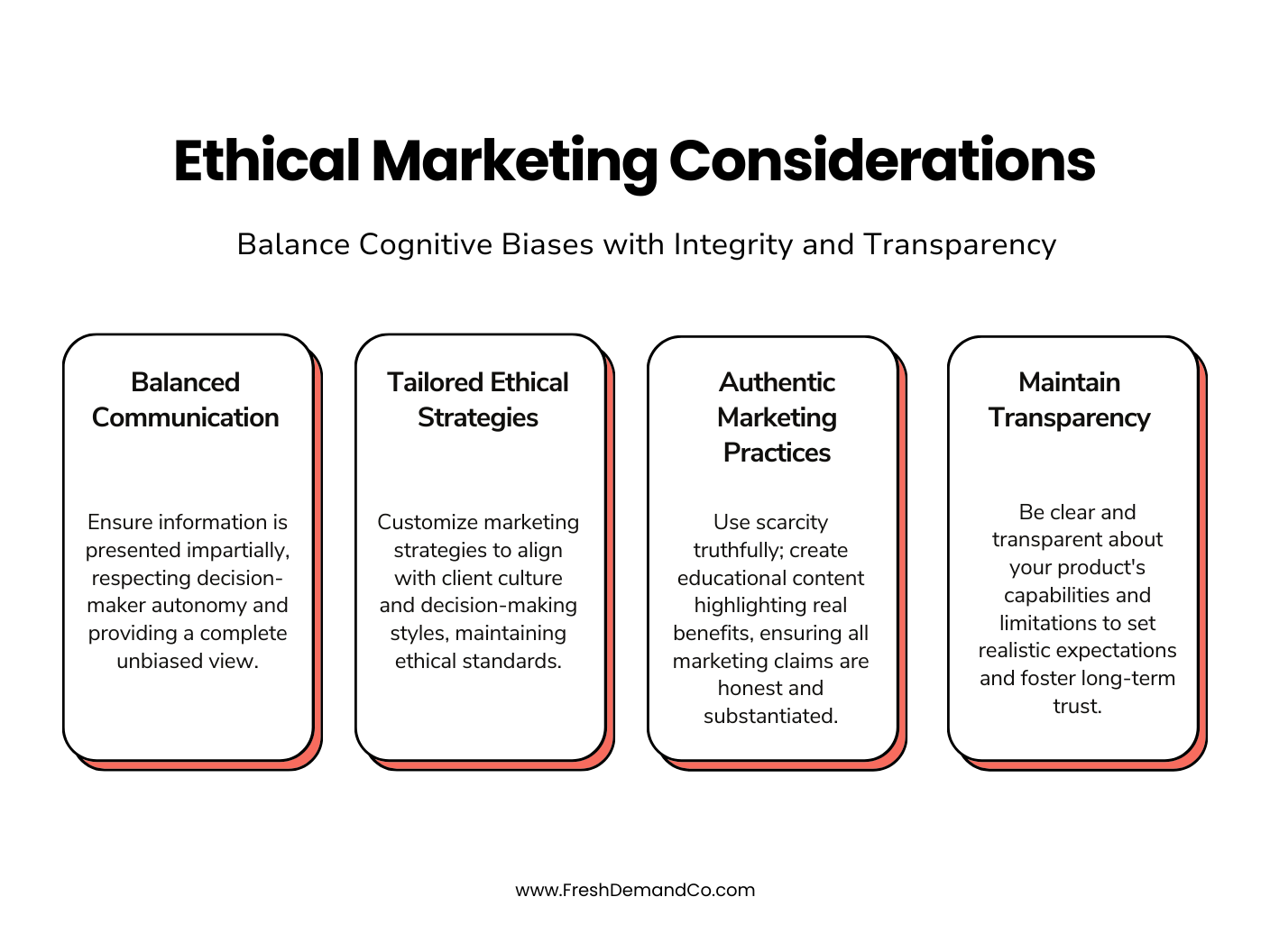 Using cognitive biases in your marketing and sales approach must be done ethically. It’s crucial to influence customer decisions responsibly, avoiding manipulation. This requires a deep understanding of consumer psychology and a commitment to honest communication.
