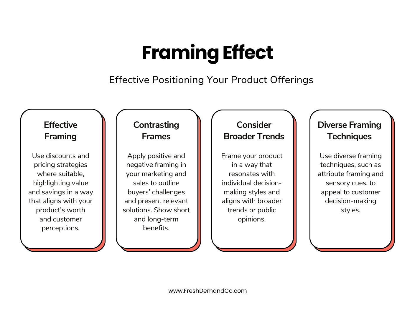 - Frame with Different Reference Points: Present the benefits of your product with different reference points, such as comparing long-term value versus immediate cost savings.